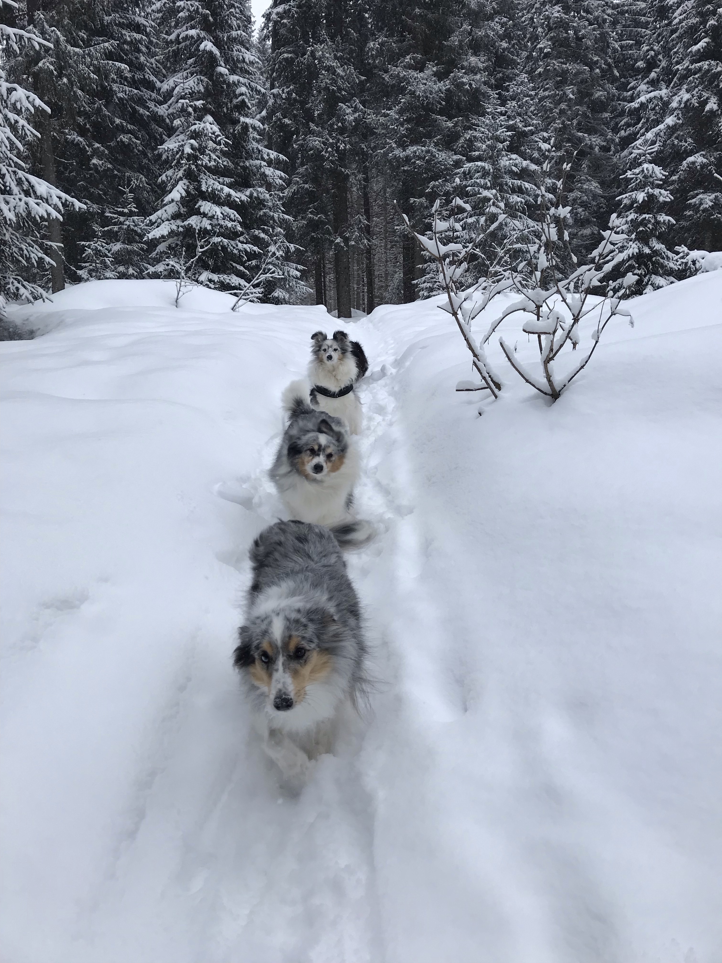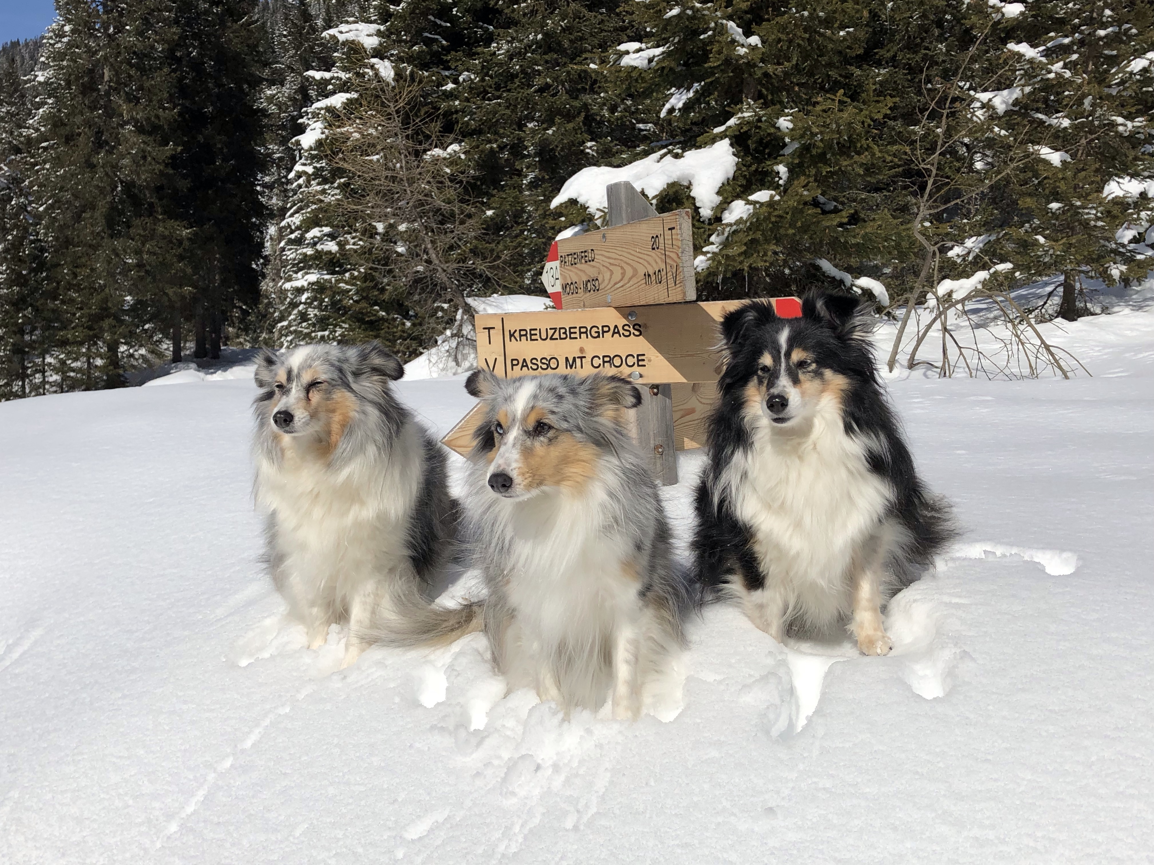 Die Dolomiten sind schon mehr nach dem Geschmack unserer Shelties. Wir haben einen tollen Platz auf dem höchsten und einem der schönsten Plätze in Europa: im Pustertal auf 1.500 m Höhe. Sommer und Winter haben einen großen Reiz und haben einen ganz eigenen Charme.