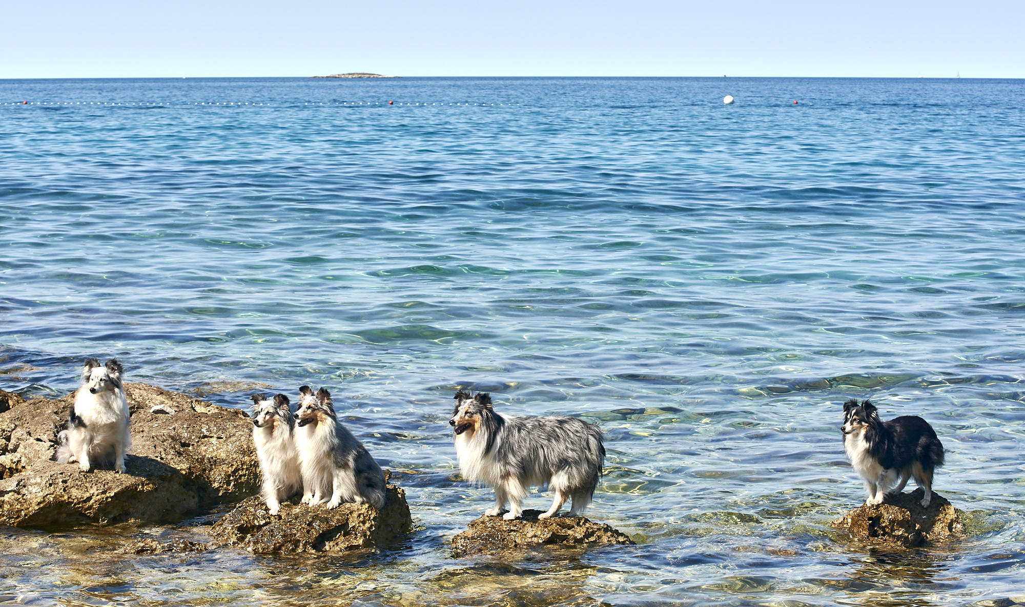 Da wir leidenschaftliche Taucher sind, hat es uns nach Kroatien verschlagen. Wir stehen mit unserem Wohnwagen immer in der 1.Reihe direkt am Meer. Die Spiele lieben die Sonne und die Hitze. Die Shelties verziehen sich immer in den Schatten. Aber ihr dichtes Fell isoliert nicht nur gegen Kälte, sonder auch ganz gut gegen Hitze.