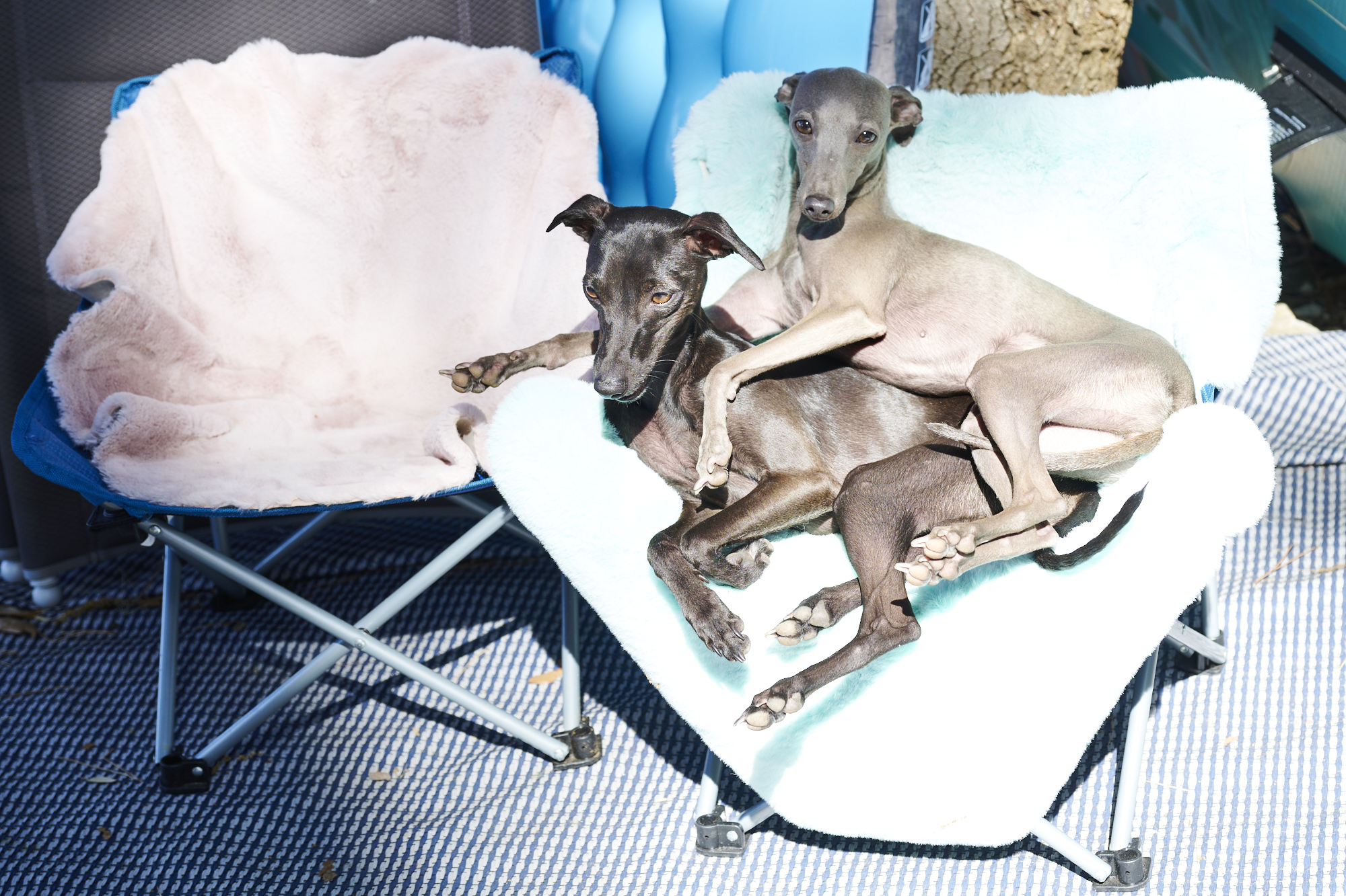 Unsere Hunde sind im Urlaub immer dabei. Wir haben uns dafür extra einen großen Wohnwagen gekauft und fahren damit durch Europa.