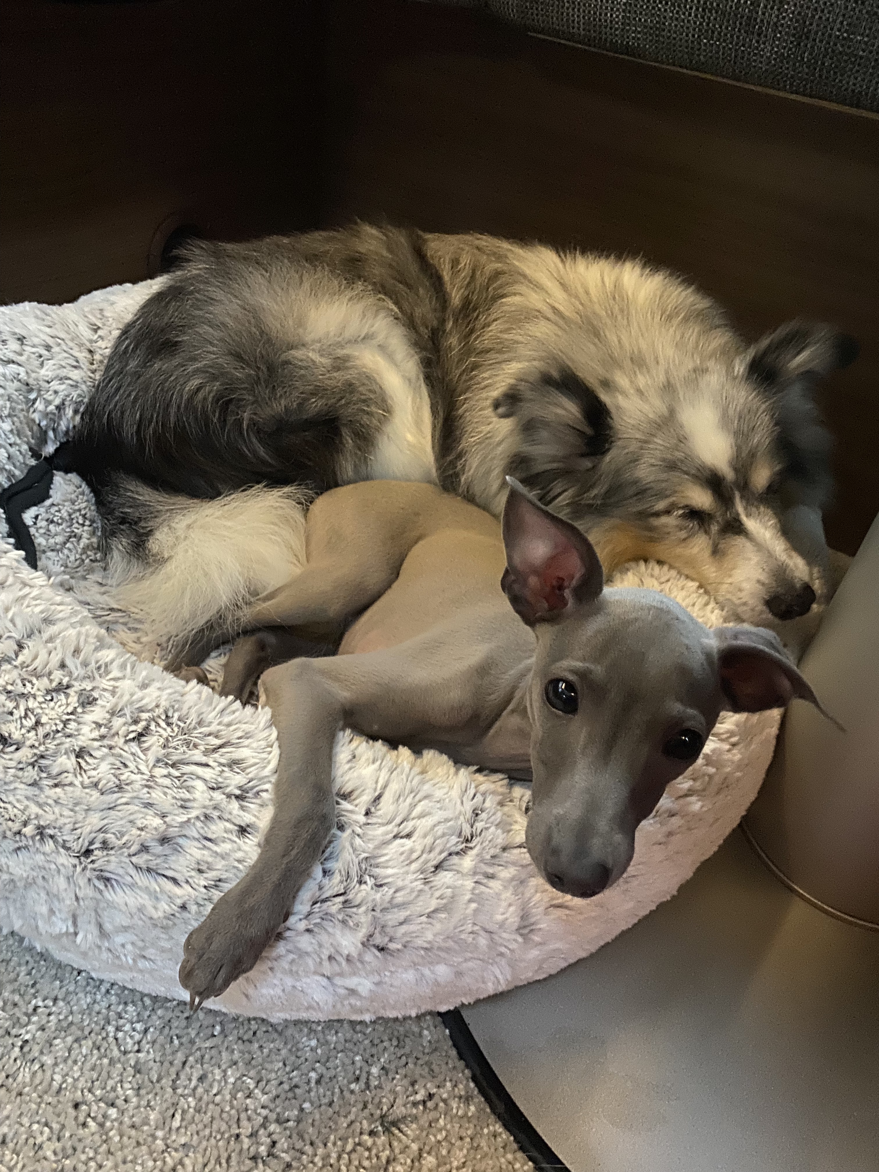 Unsere ersten Hunde waren zwei Shelties und ein Windspiel. Und so beschlossen wir, unsere Zucht mit einem Windspiel neu aufzusetzen.