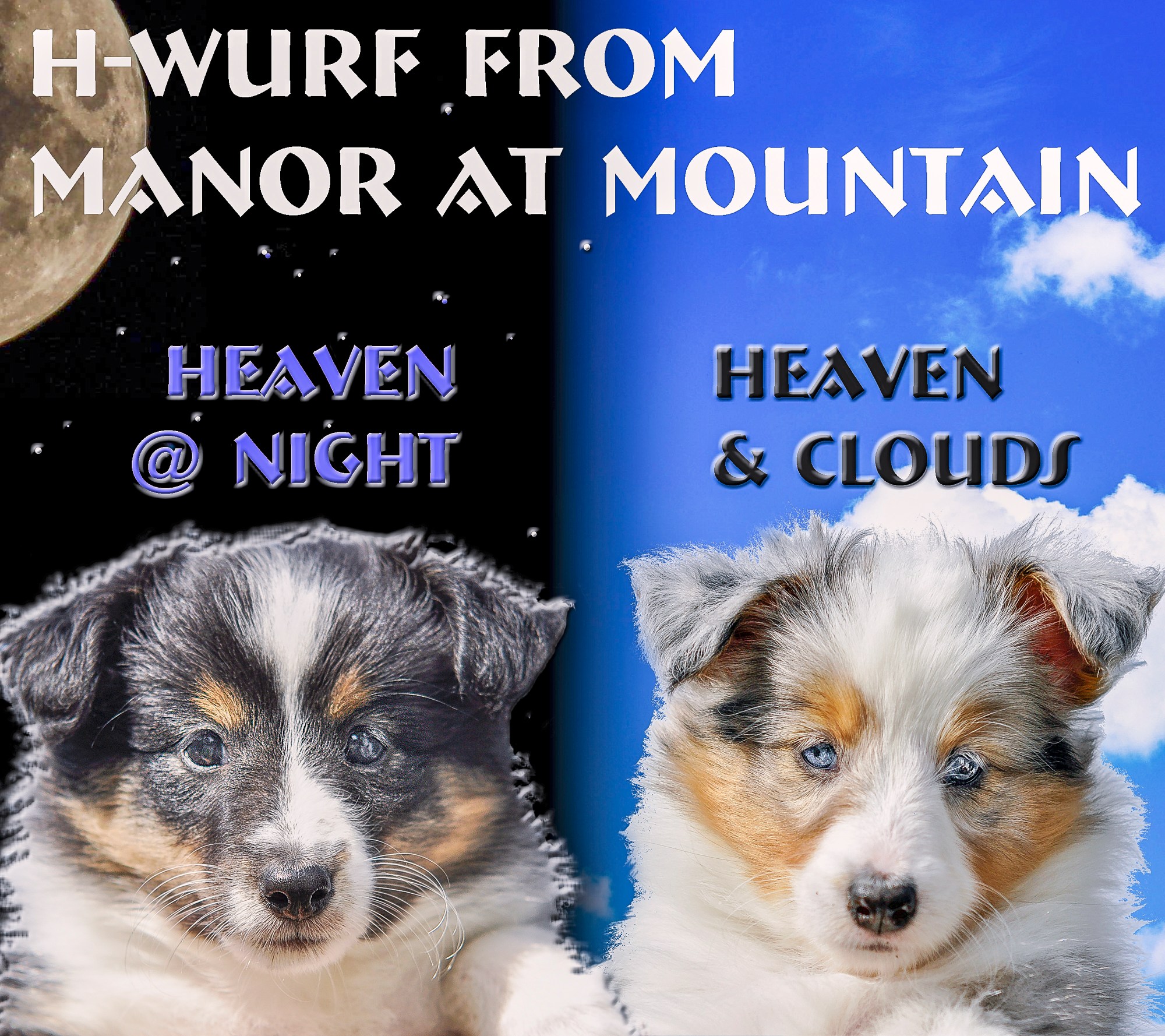 Ein weiterer Wurf mit unserer wunderschönen Sky. Wir suchten nach einem Rüden mit einer gr. weißen Halskrause und fanden Angus. Als Namen wollten wir in Anlehnung an „Sky“: „Heaven“ für die beiden Welpen.