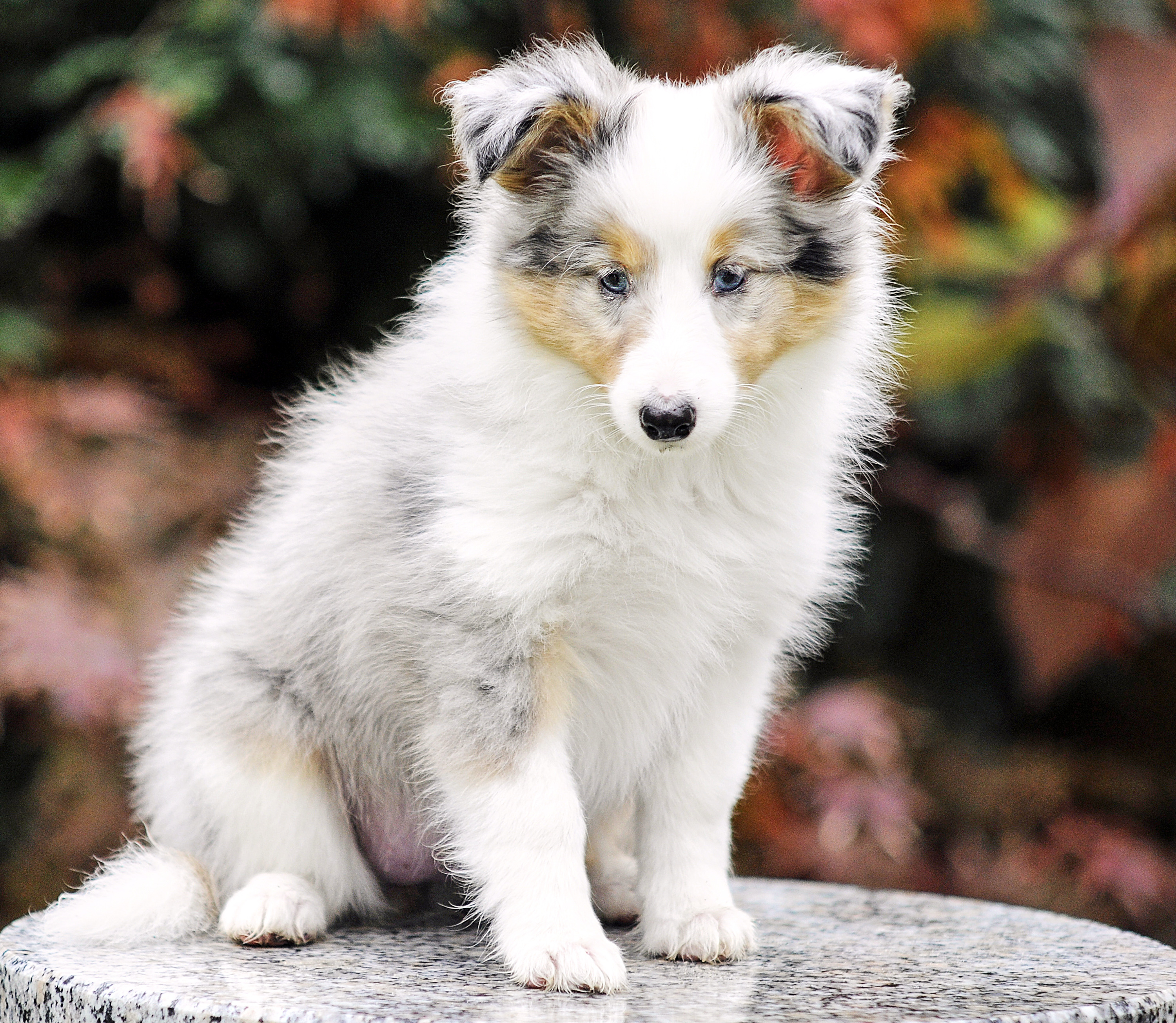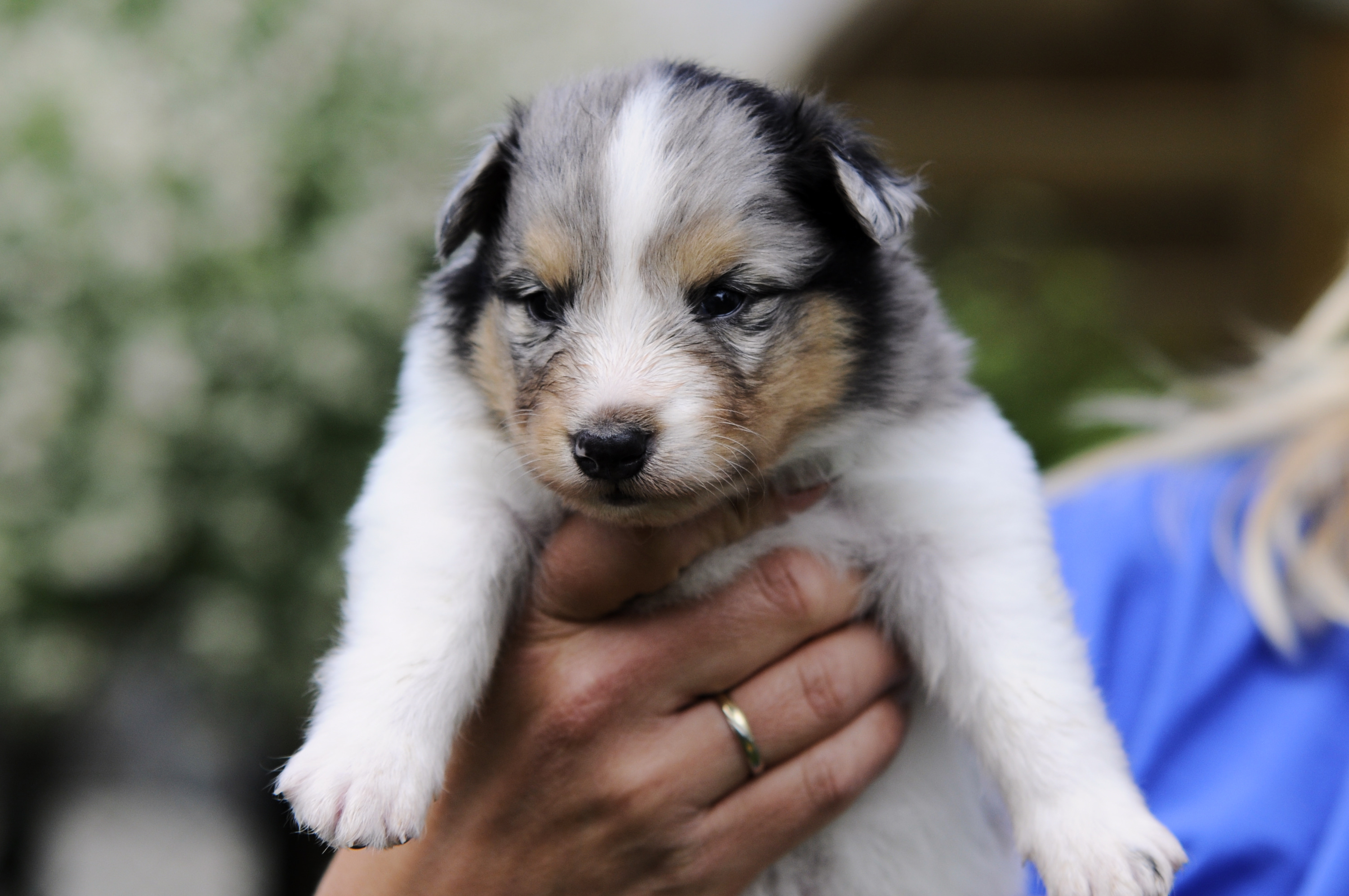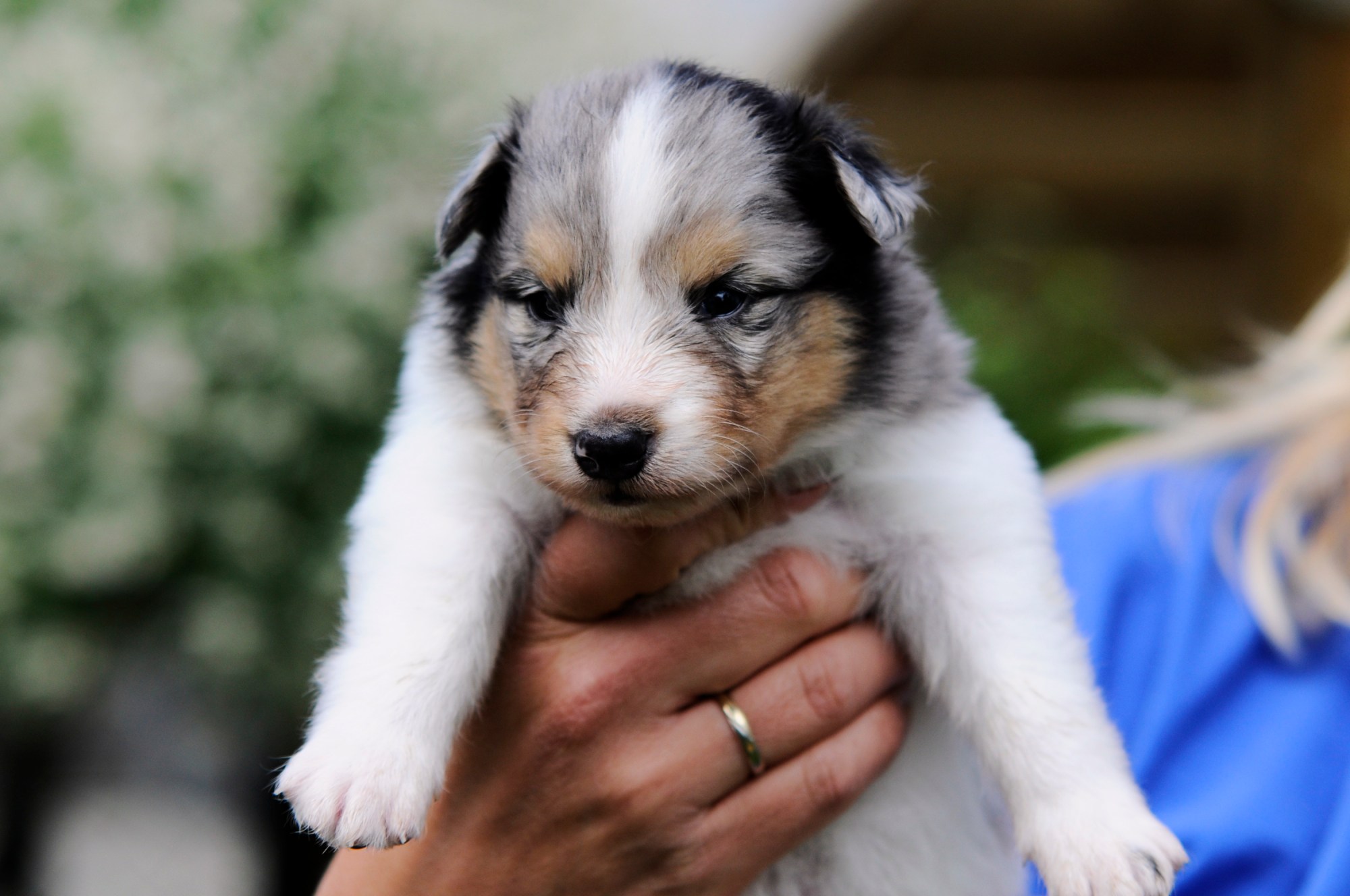 Welpen: 4/1 blue merle, tricolour, colour headed white