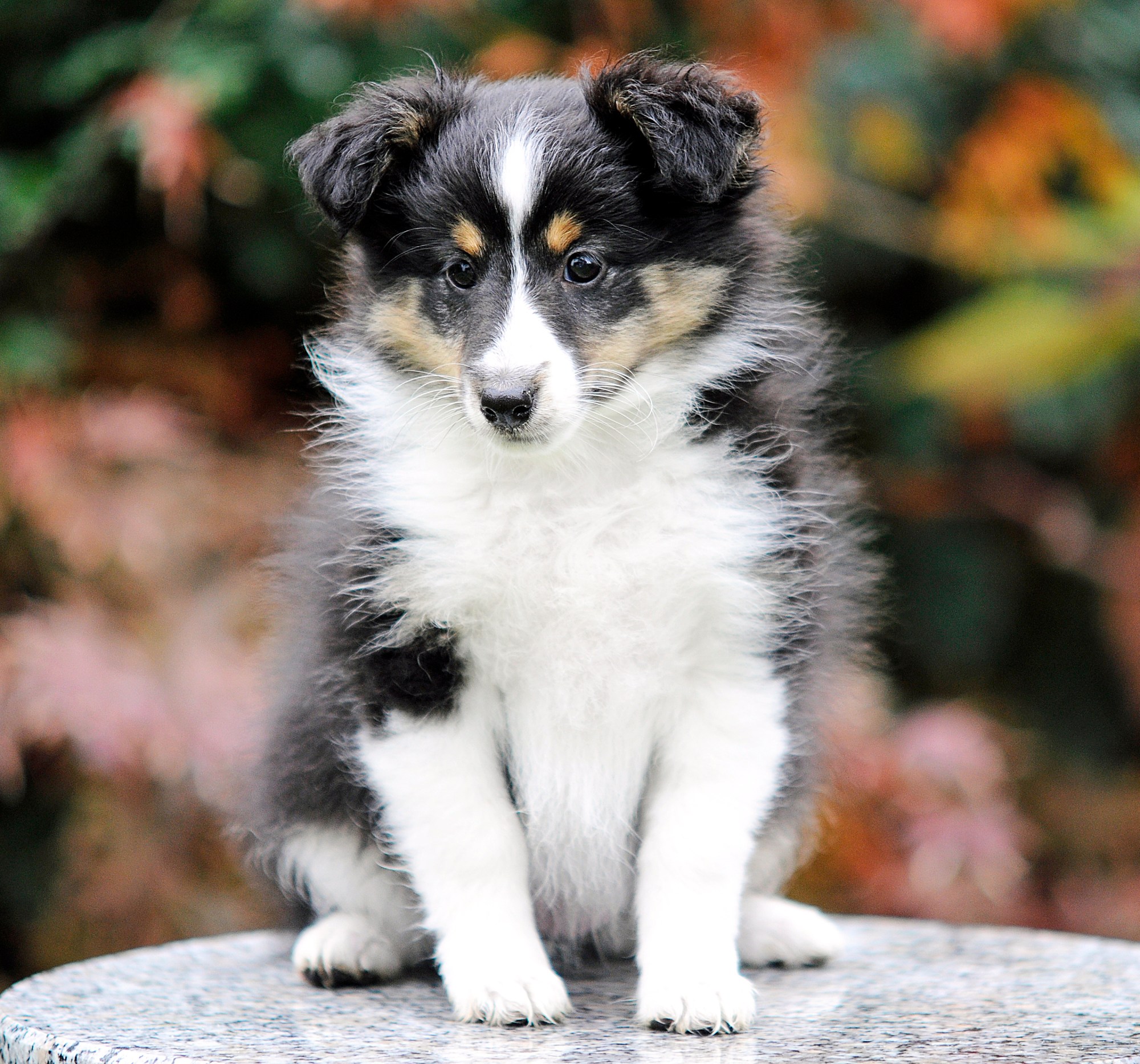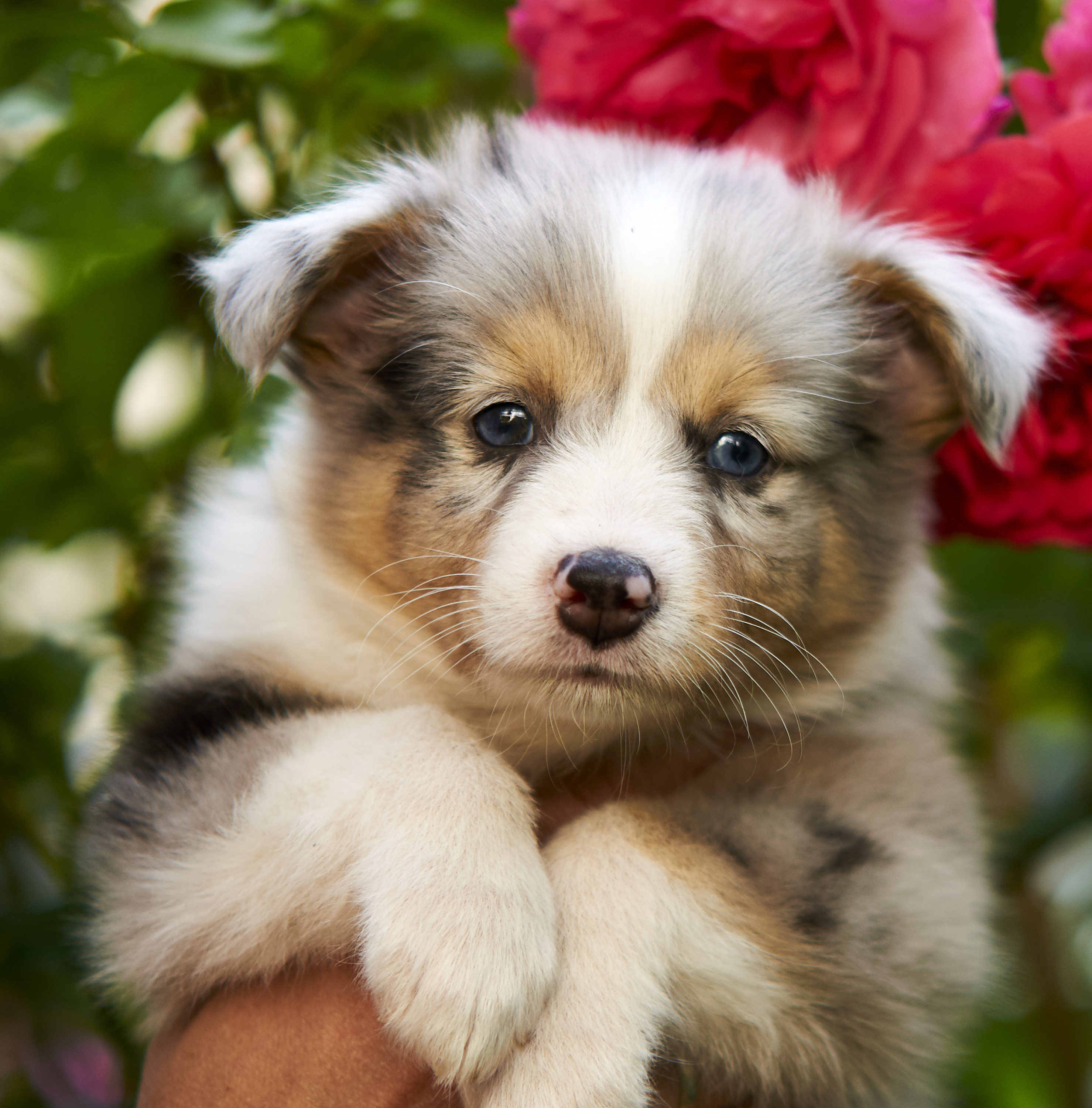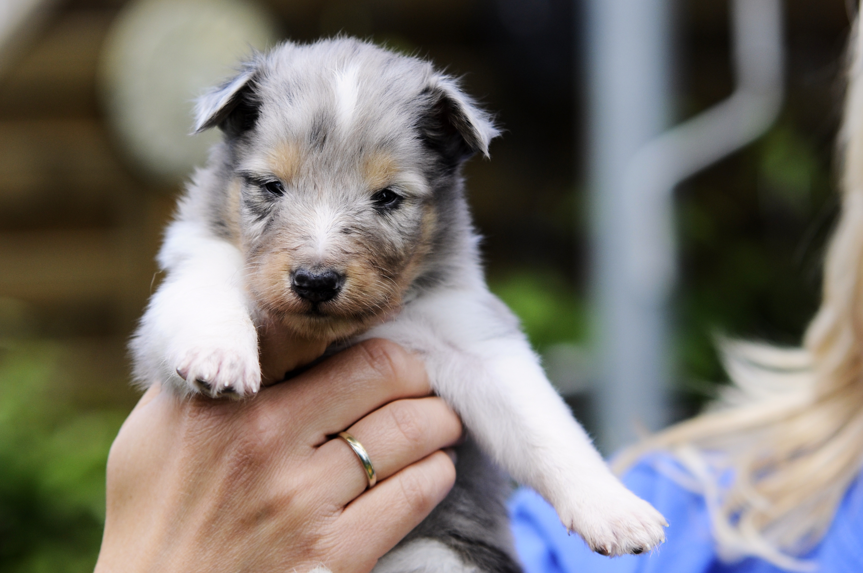 Welpen: 4/1 blue merle, tricolour, colour headed white