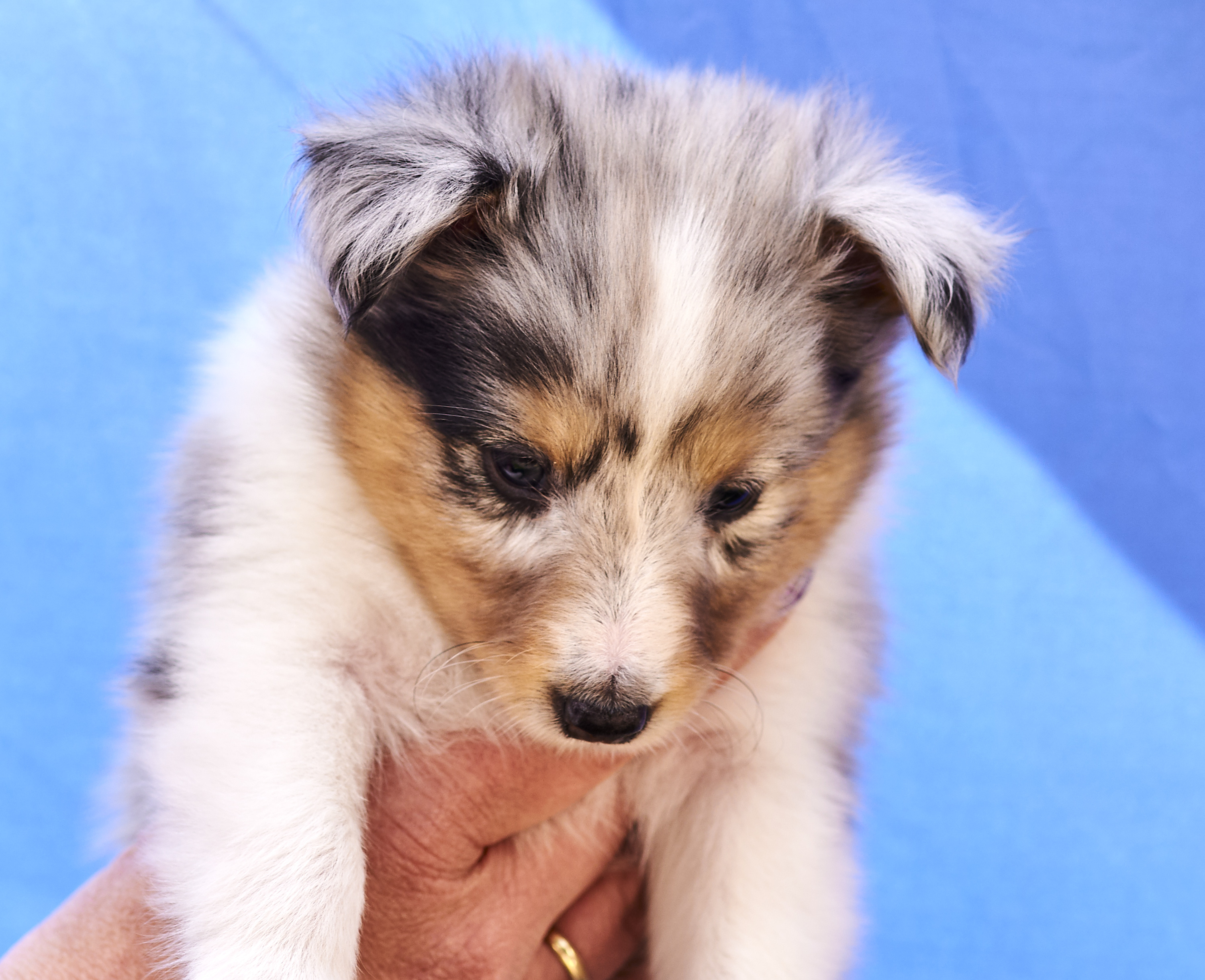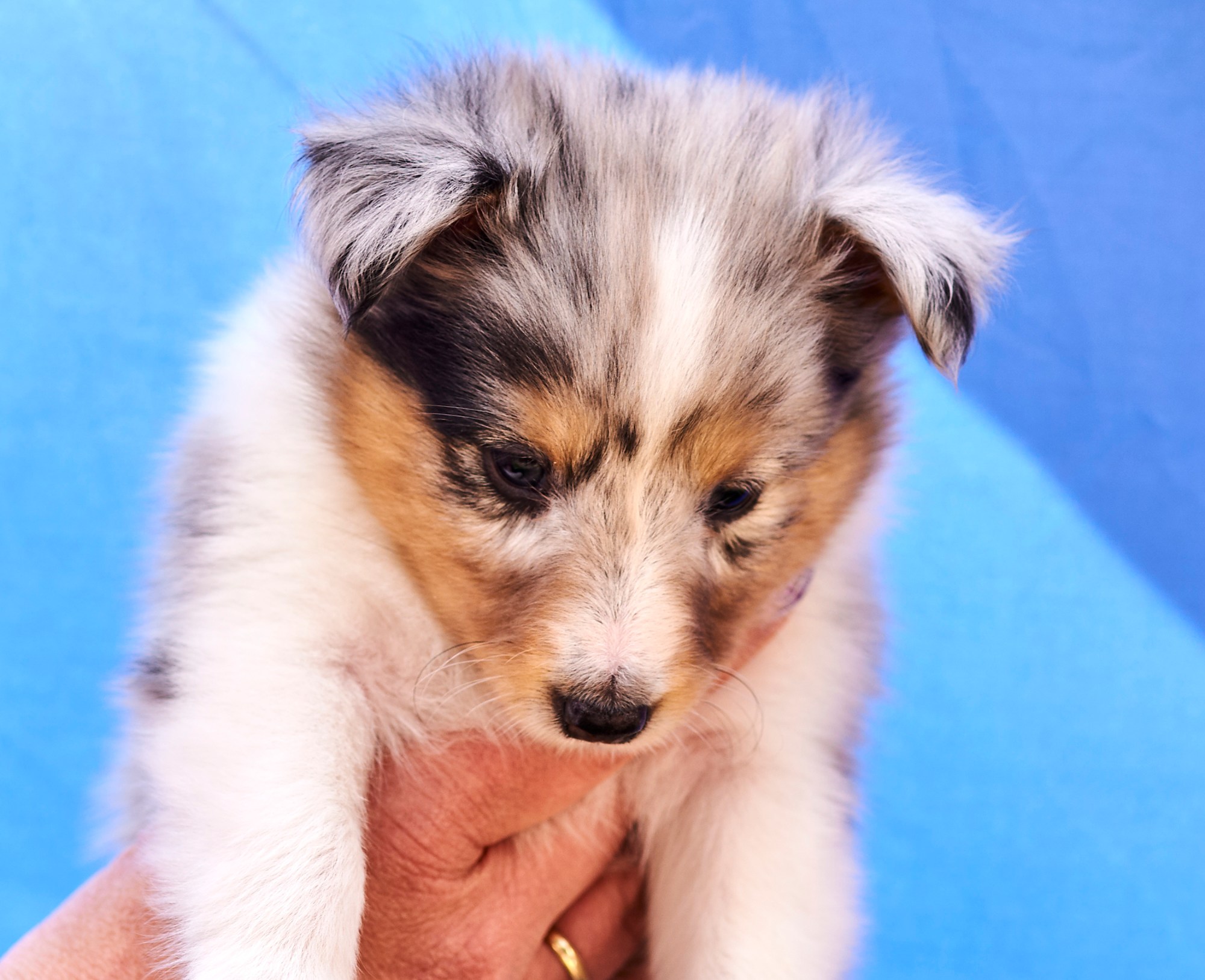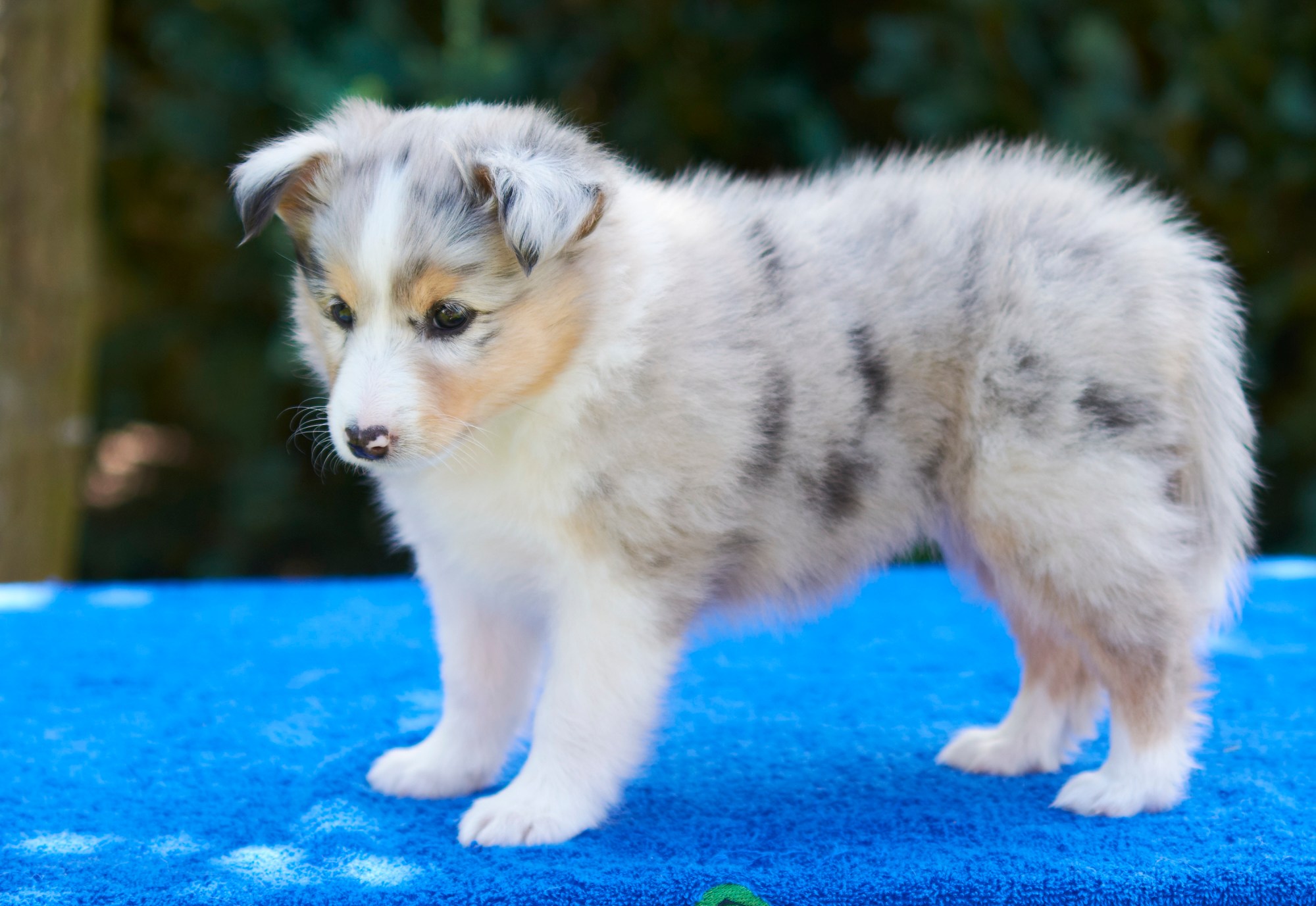 Ihr allerletzte Welpe war eine blue merle Hündin und überglücklich behielten wir Sie – unsere Blue.
