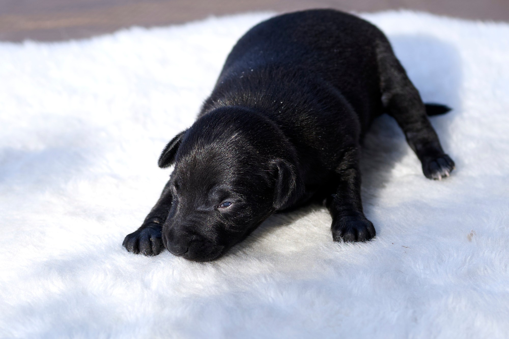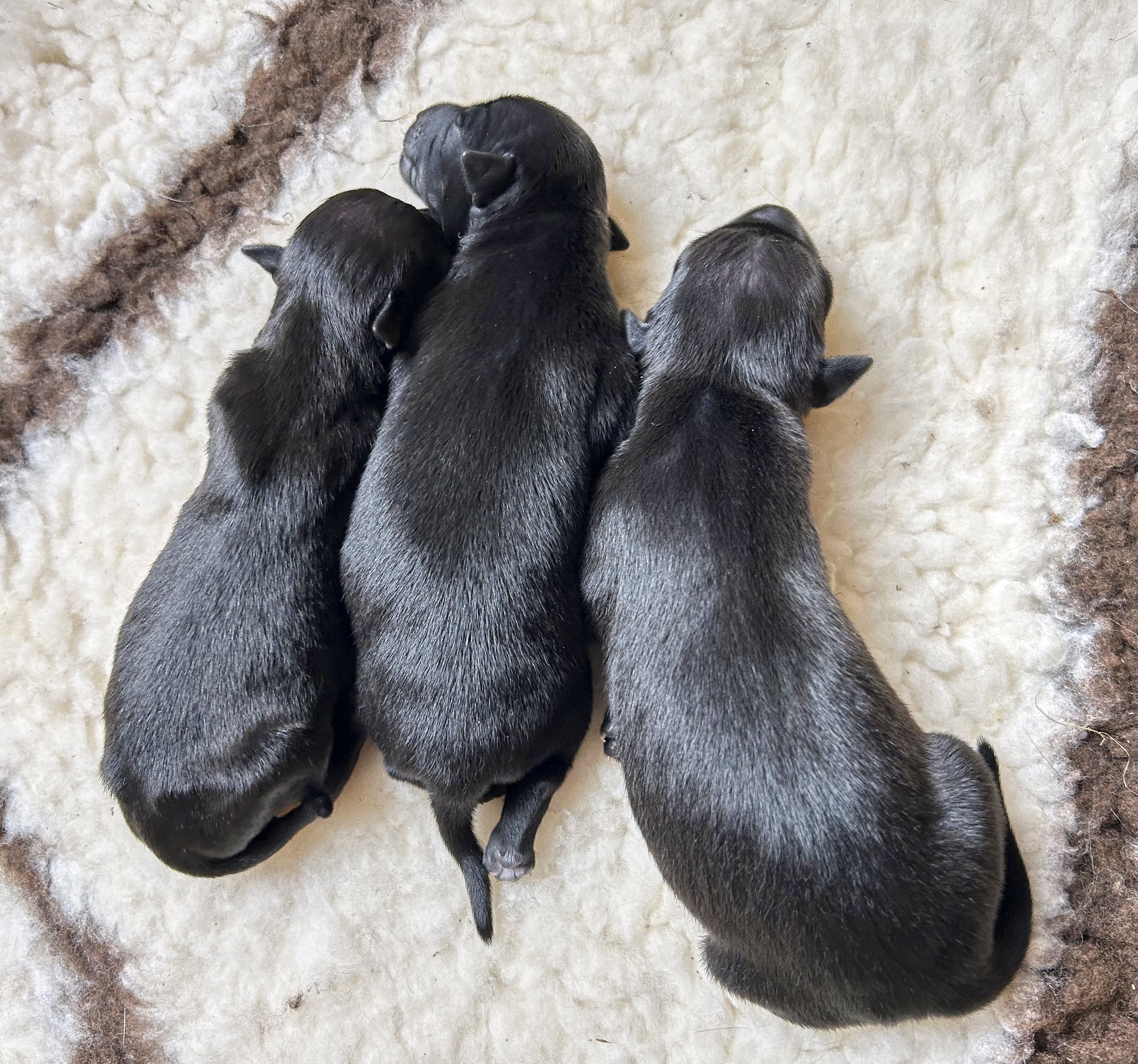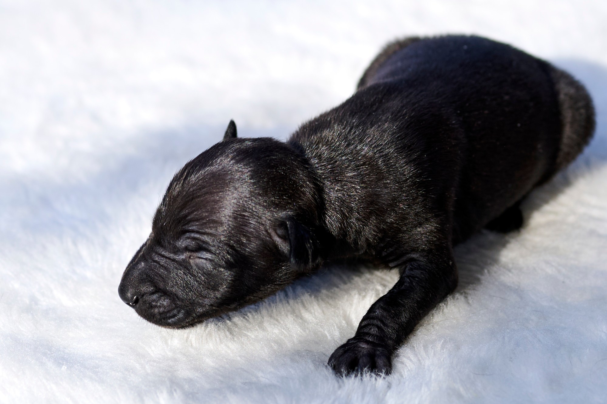 Rüde 1 nimmt richtig gut zu. Er hat nach nicht einmal einer Woche sein Gewicht schon verdoppelt. Er ist ein gemütlicher kleiner Kerl, der immer an Mama hängt, wenn er nicht gerade schläft.