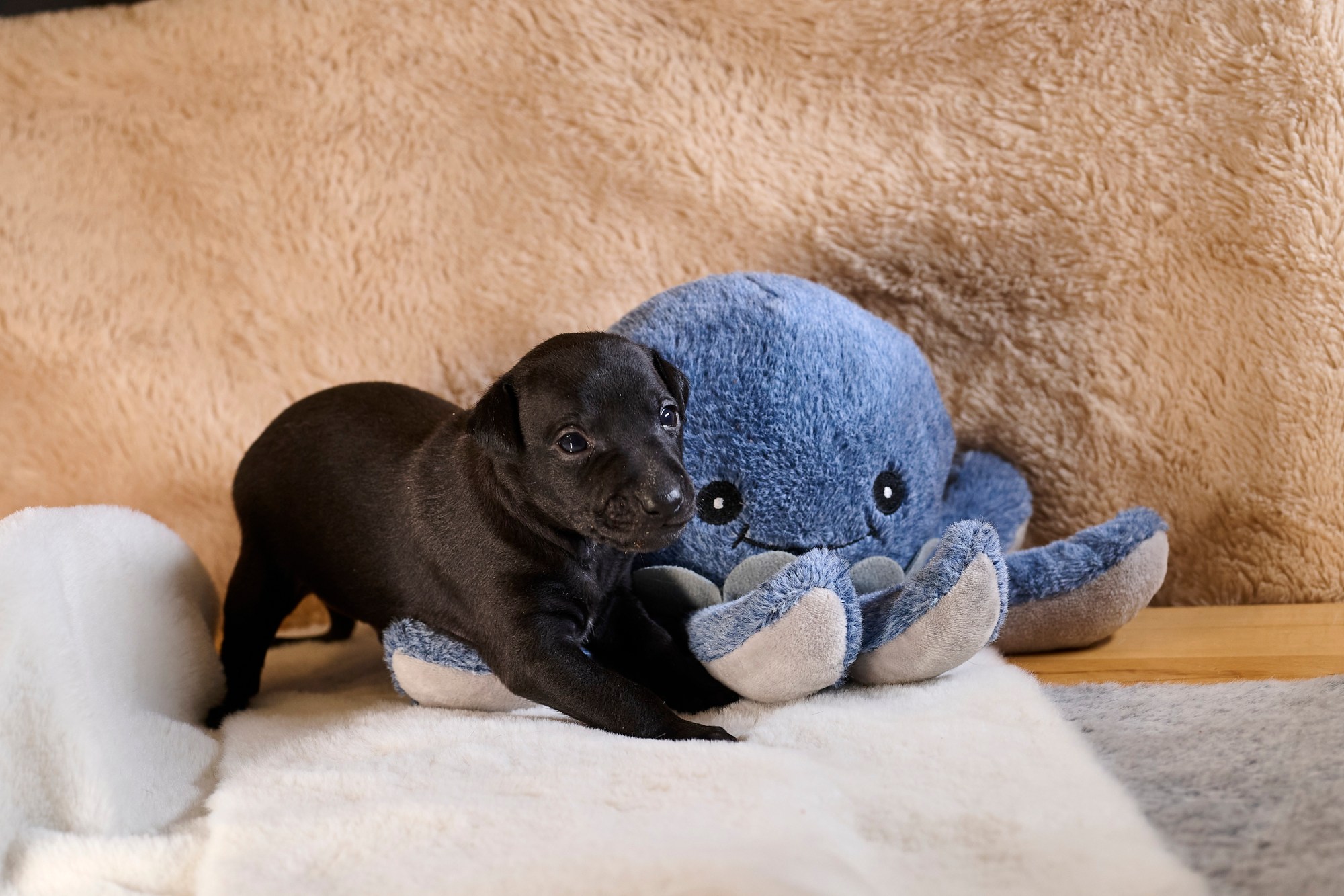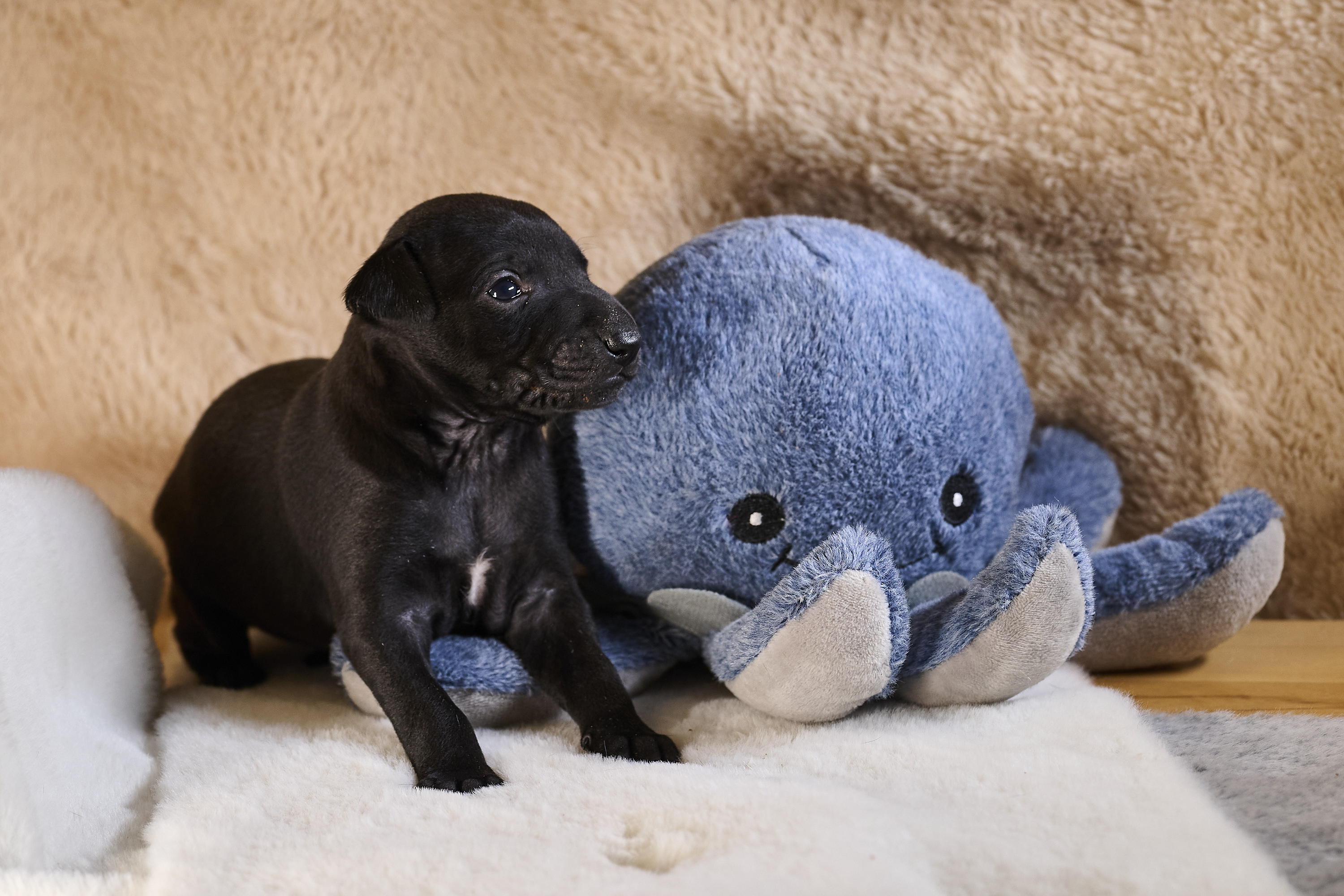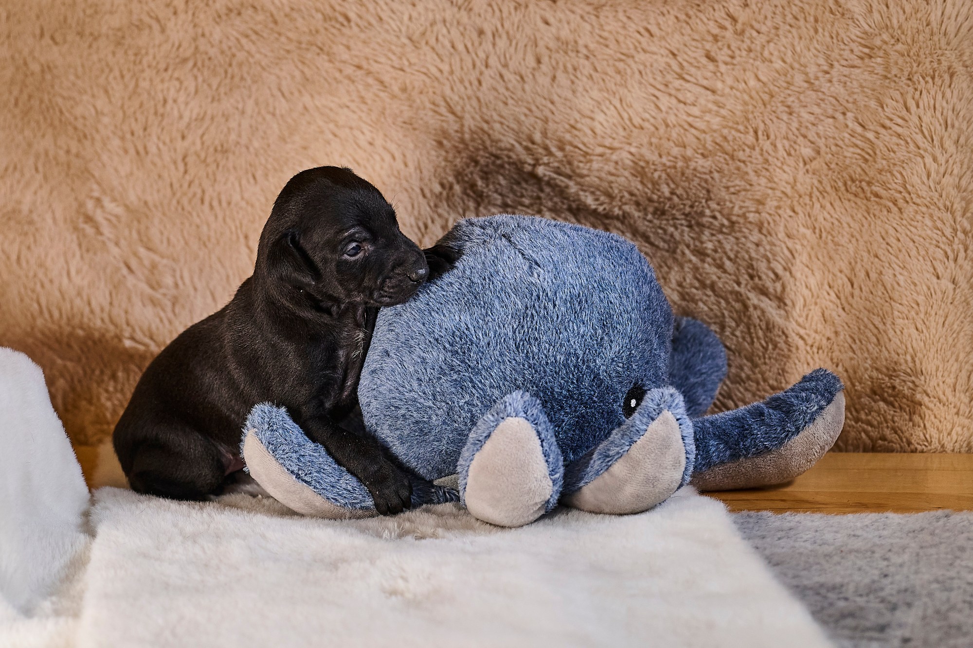 Rüde 1 und die Hündin sollten jetzt aus dem Gröbsten raus sein und bekommen Namen von uns – natürlich italienische Namen mit „U“. Da die Papiere erst mit 8 Wochen ausgestellt werden, bekommen die neuen Familien die Möglichkeit, noch Ihren Lieblingsnamen zu ergänzen.