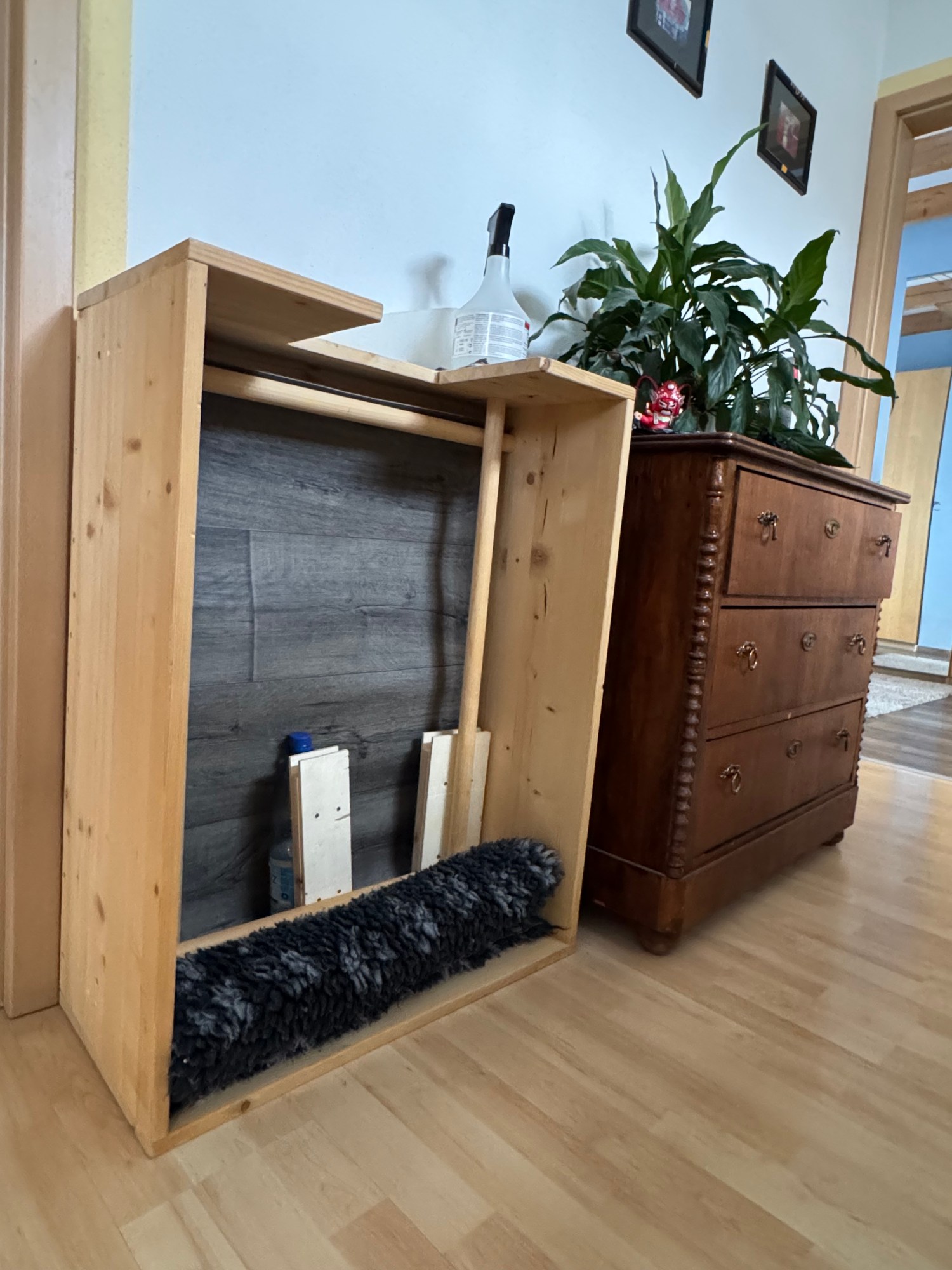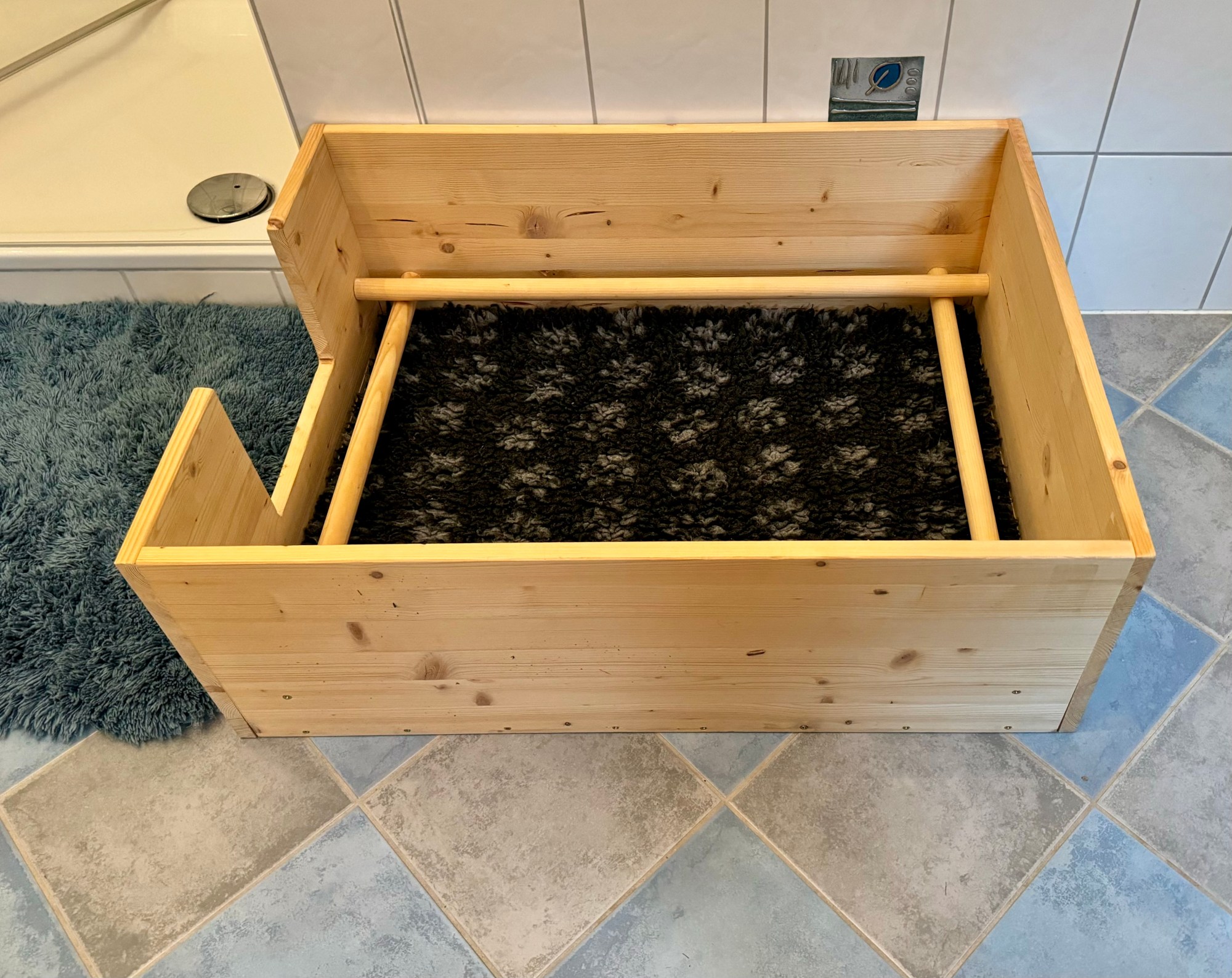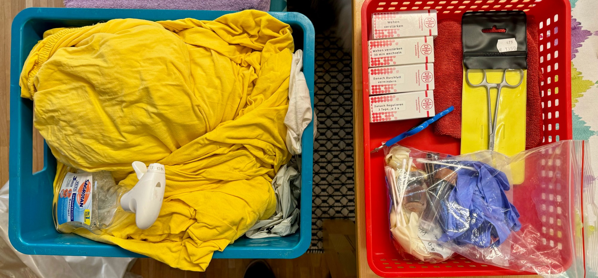 Die große Wurfkiste steht, die kleine Wurfkiste ist einsatzbereit und das Material für die Geburt liegt bereit.