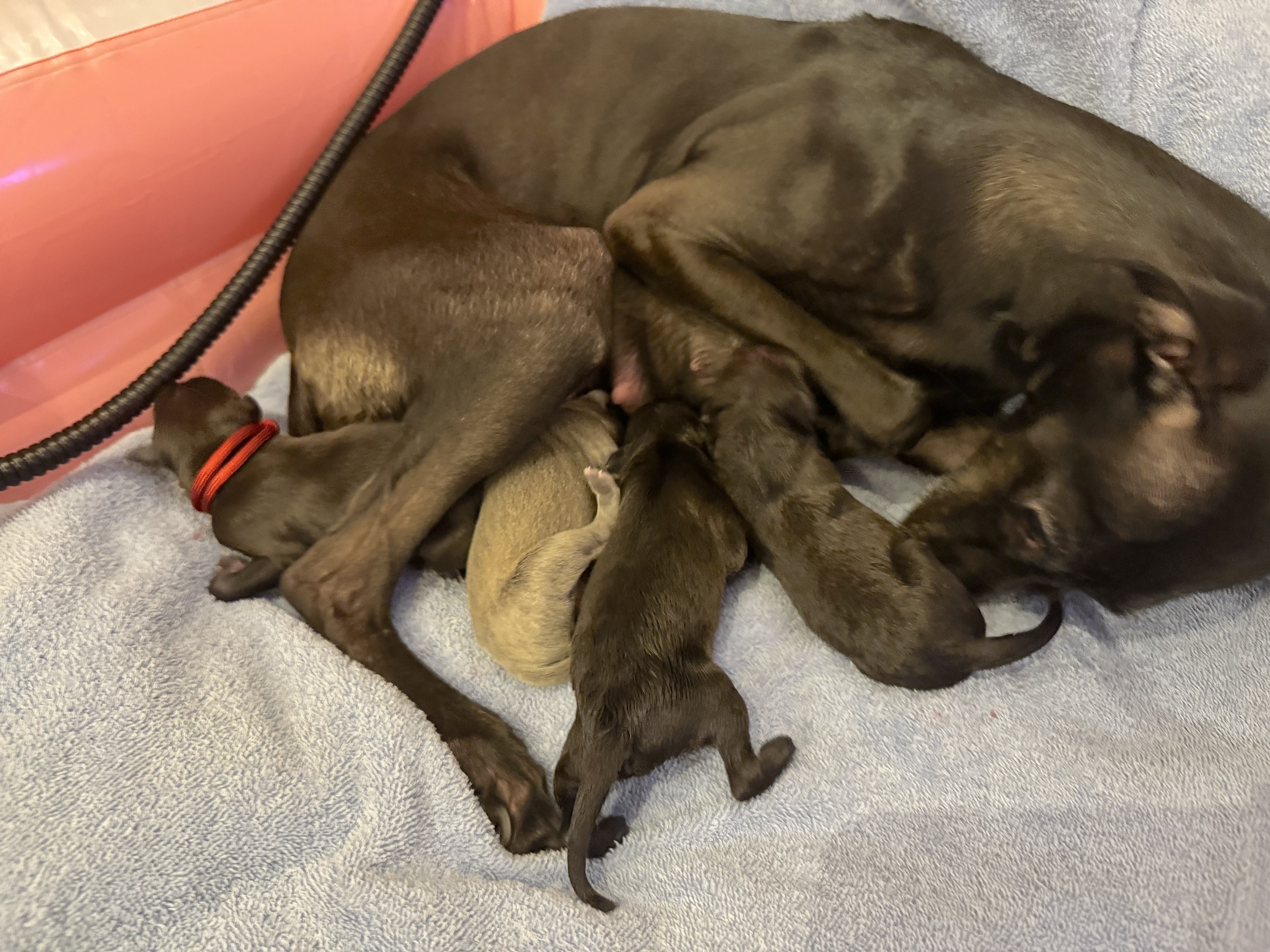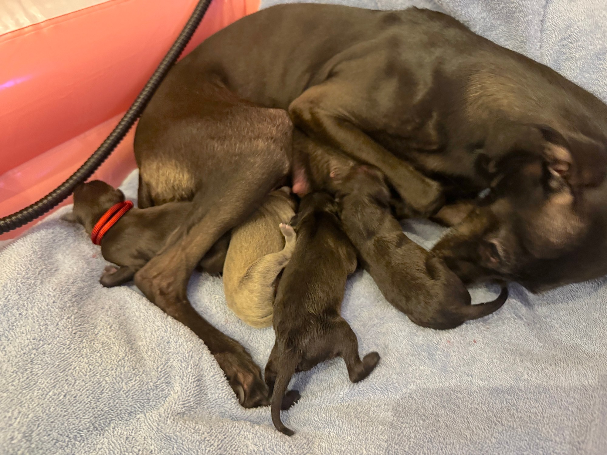 Die Geburt verlief völlig problemlos und alle Welpen haben einen guten Saugreflex.