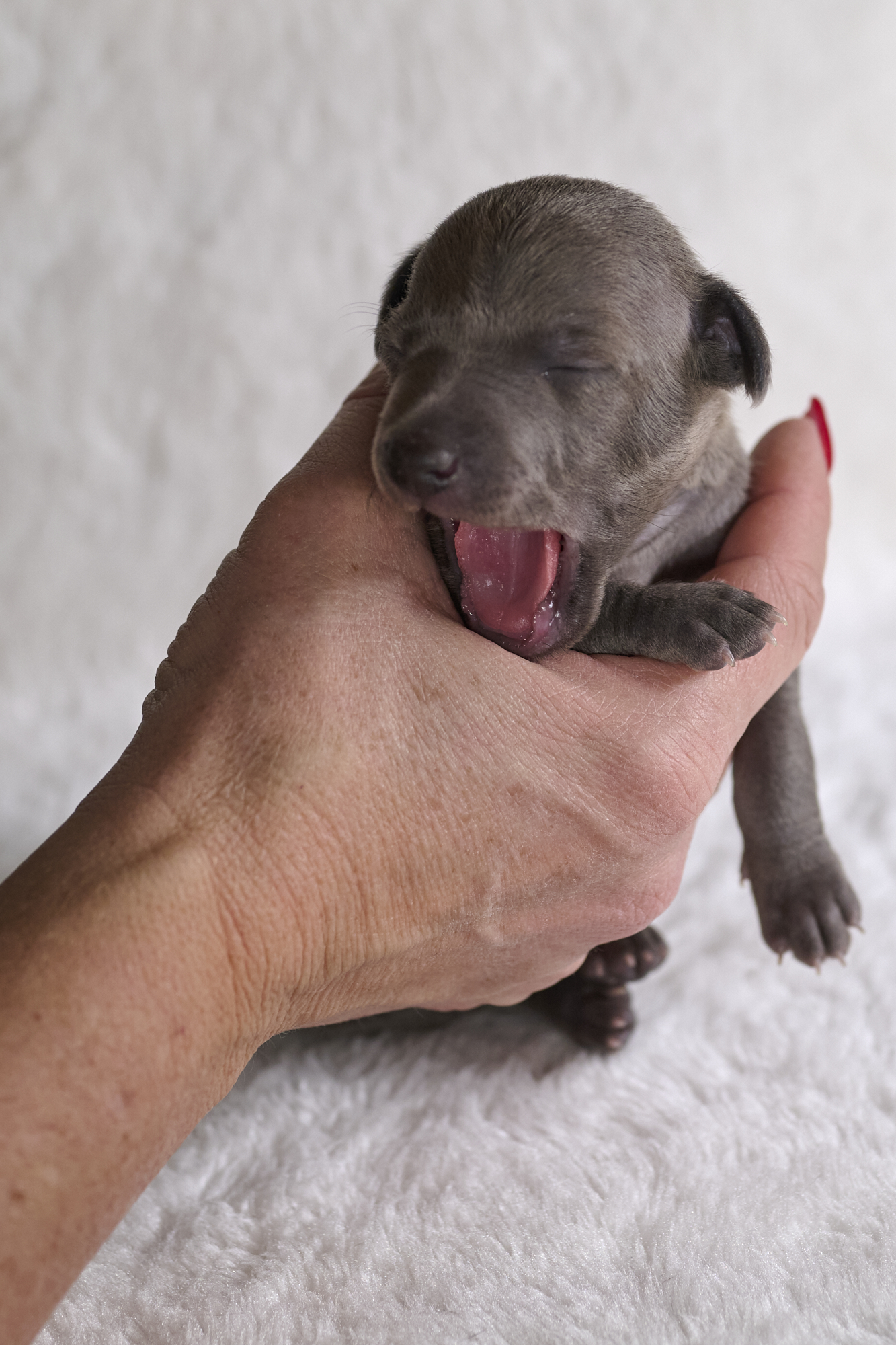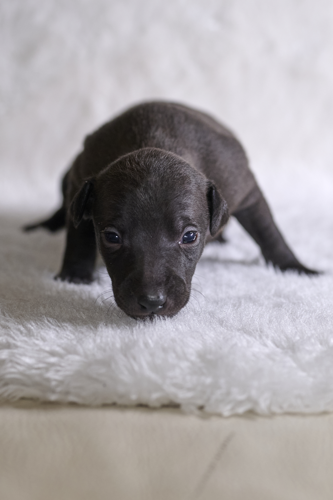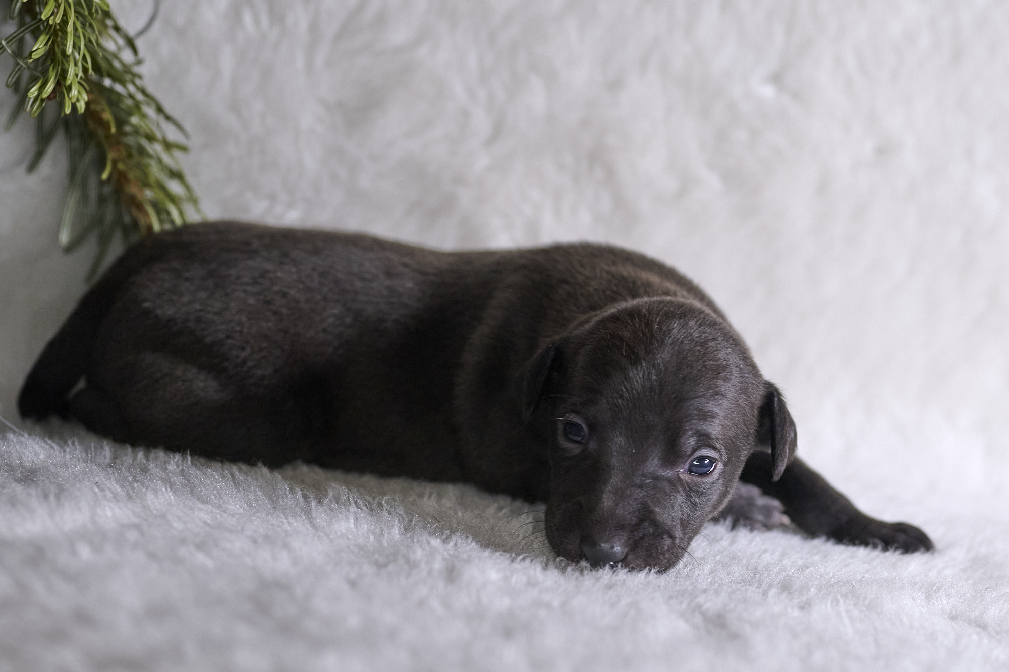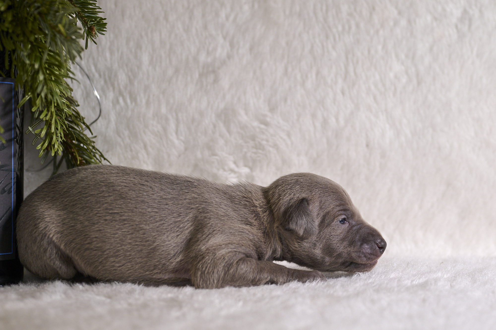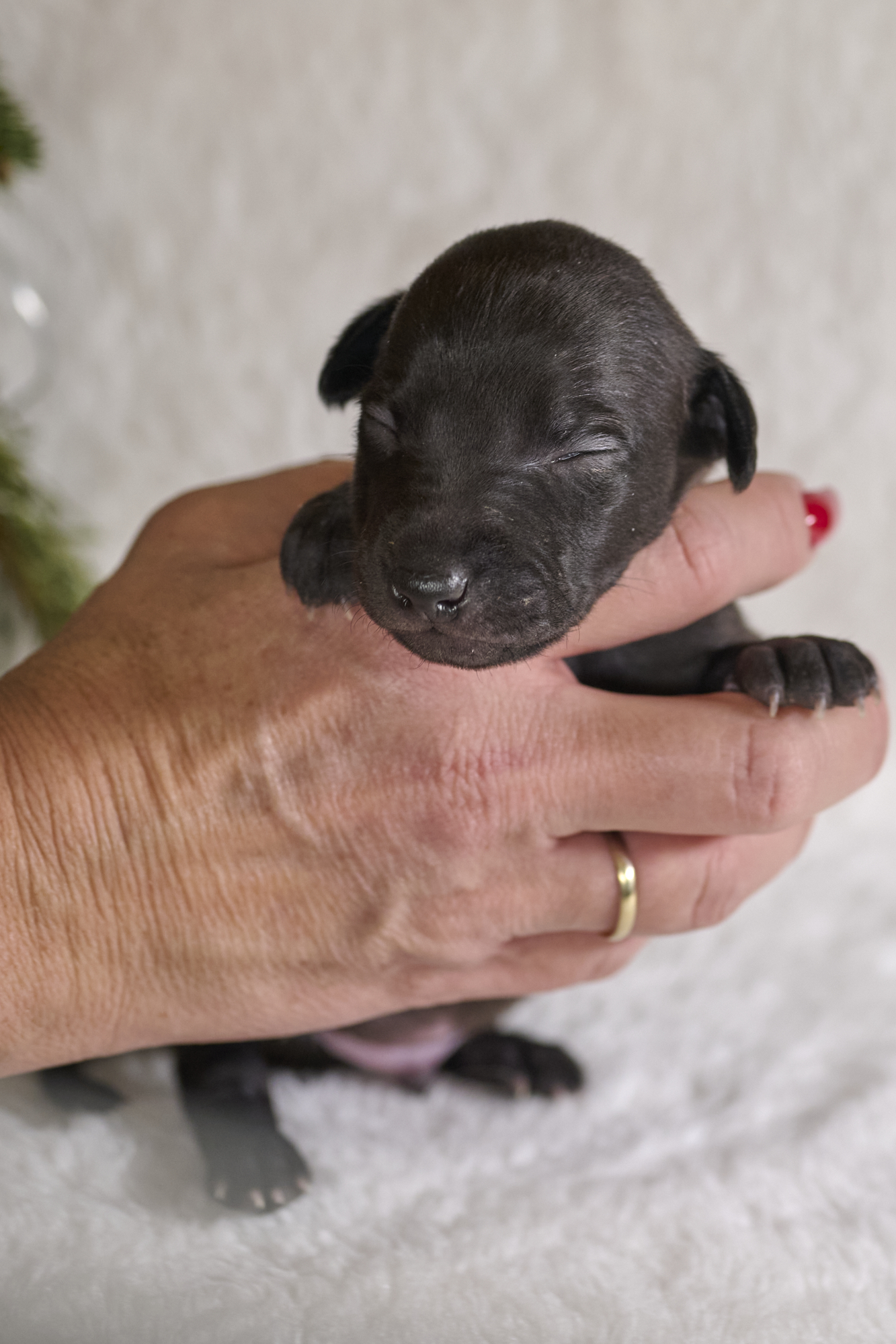 Die Welpen sind nun aus dem Gröbsten heraus und beginnen, Äuglein und Öhrchen zu öffnen. Sie versuchen nun, ihr Köpfchen selbst zu halten. Das ist immer noch eine wackelige Angelegenheit, weil sich die Halsmuskulatur erst noch entwickeln muss.